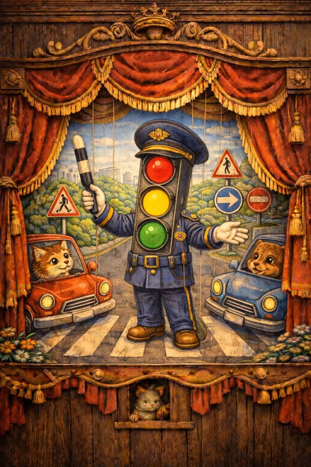 Интерактивный кукольный спектакль в игровой форме обучающий детей правилам дорожного движения.