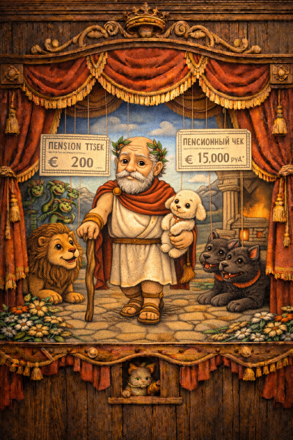Остроумный кукольный спектакль-пародия, в котором античный герой Геракл неожиданно оказывается… современным пенсионером! Спектакль сочетает древнегреческие мотивы с актуальным юмором, а комичные ситуации гарантируют взрывы смеха у зрителей всех возрастов.